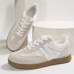 Venta al por mayor de malla con cordones de gran tamaño blanco zapatillas de deporte de las mujeres 2025 Primavera Verano Casual transpirable aumento de altura versátil deportes