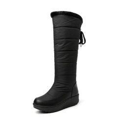 Botas de goma de lana de PU cálidas de cuero de alta calidad para invierno nuevas negras planas de lujo impermeables para mujer