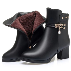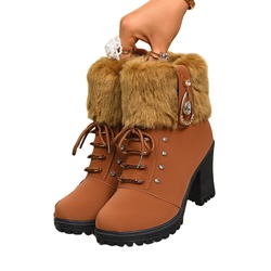 Botas con cremallera lateral de piel corta y tacón grueso con punta redonda para mujer cálidas con forro polar de talla grande para invierno, novedad de 2025, venta al por mayor