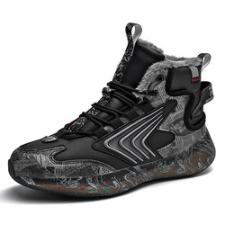 รองเท้าลุยหิมะสำหรับผู้ชายสีเทาอบอุ่นซับในผ้ากำมะหยี่หนาสำหรับฤดูหนาว