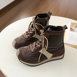 รองเท้าผ้าใบหุ้มข้อสูง Shougu Original รุ่น Autumn สำหรับผู้หญิง ปี 2025 ยอดนิยม หนัง/หนังกลับ ผูกเชือกด้านหน้า สไตล์เรโทร ช่วยให้ดูผอม