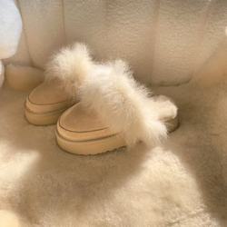 บูทขนเฟอร์ขนฟูสำหรับผู้หญิงรองเท้าหรูหราขนฟูนุ่มฟูแฟชั่นสำหรับเด็กผู้หญิง