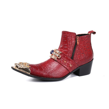 รองเท้าบูทหุ้มข้อหัวแหลมสำหรับผู้ชายรองเท้าบูทหุ้มยางเทียมขนาดใหญ่สไตล์อังกฤษย้อนยุคลำลอง